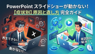 PowerPointのアニメーションが動かない・再生されない原因を症状別に解説。設定ミス・互換モード・ハードウェアアクセラレーター・埋め込み動画の問題まで、対処法を図解つきで紹介します。