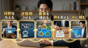 これが最も強力かもしれません。「最高の回答を作るために、私に足りない情報があれば質問してください」と付け加えるのです。これにより、あなたが気づかなかった視点をAIが補完してくれ、二人三脚で中身をブラッシュアップできます。