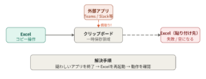 「貼り付けできない」と一口に言っても、原因はまったく異なる。最初に症状を絞ることで、解決までの時間が大幅に短縮できる。