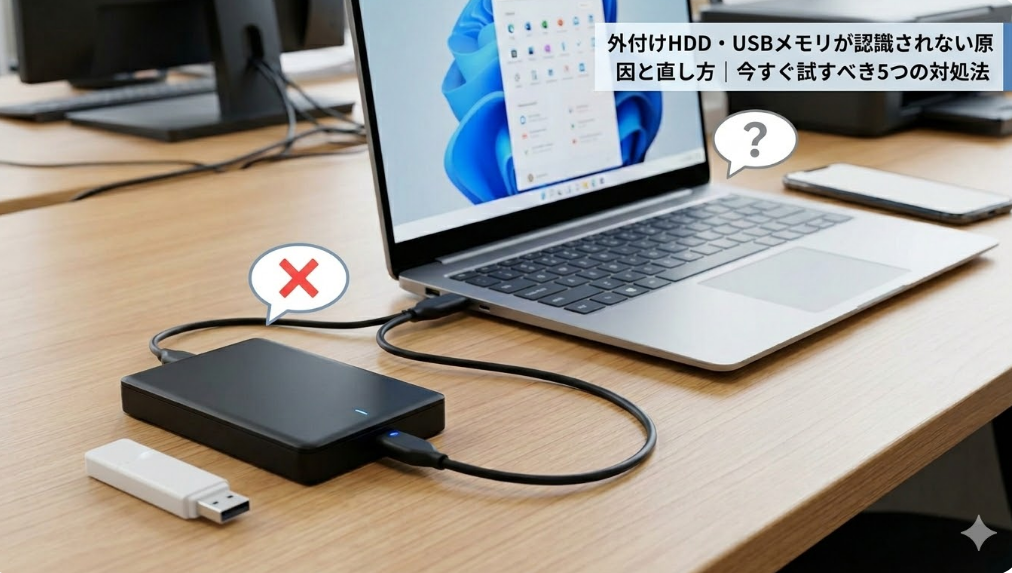 結論から言うと、外付けHDDやUSBメモリが認識されない場合、まずは「物理的な接続」か「システムの設定」のどちらに問題があるかを見極めることが重要です。