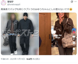 お相手の女性の名前は伏せられていますが、Amazon Prime Videoの恋愛リアリティ番組「ラブトランジットシーズン3」(通称ラブトラ3)に出演していたみゆう(與田珠夕/よだ みゆう)さんではないかと、ネット上で話題になっています。