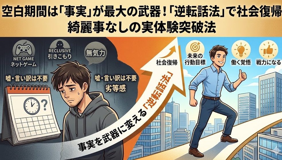 空白期間が長期期間になった場合は、嘘や言い訳をやめ、「事実」をそのまま武器に変える。それが、今回お伝えする「逆転話法」です。