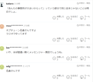 名倉潤さんは条件に一致する部分もありますが、確定しているわけではありません。