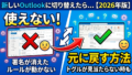 Outlookの画面右下に「オフライン作業中」と表示されていれば、ほぼこれが原因です。確認と解除の手順を図解で説明します。
