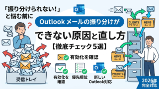 この記事では「Outlook 検索フォルダ 更新されない」「Outlook 最新メール 表示されない」といった症状の原因から、再起動・キャッシュクリア・インデックス再構築まで、試す順番どおりに図解で解説します。