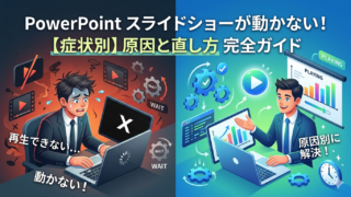 PowerPointのアニメーションが再生されない原因は、設定の見落としから互換モードの影響、グラフィック処理の問題まで多岐にわたります。「どこを直せばいいか」が分からないまま時間を溶かしてしまうのが最も痛いパターンです。