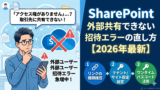 | テナント全体でSharePoint外部共有が制限されていないか | SharePoint管理センター → ポリシーを確認 |