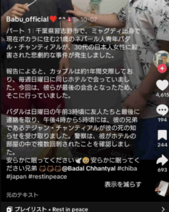 亡くなったチャンタール・バダルさんは、TikTokerとして活動しており、そこそこの知名度がありました。