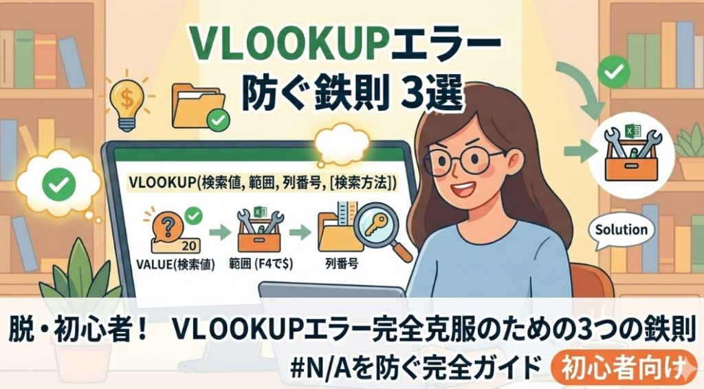 この記事では、脱・初心者を目指すあなたに、VLOOKUPエラーを根絶するための3つの鉄則を分かりやすく解説します。この記事を読み終える頃には、エラーに怯えることなく、自信を持ってVLOOKUPを使いこなせるようになっているはずです。