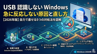 スリープ復帰後のトラブルはこのUSB電源管理が原因であることが非常に多いです。関連して、Windowsがスリープから復帰しない問題の対処法もあわせて確認しておくと安心です。