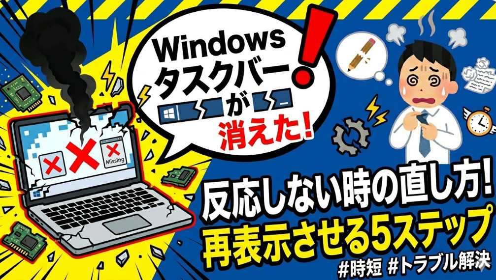 この記事では、Windowsでタスクバーが消えた・反応しない原因と、今すぐ試すべき5つの対処法をステップ形式で解説します。