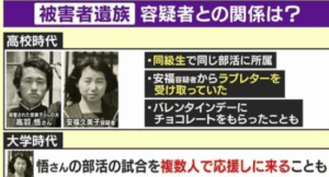 - 被害者との関係: 安福容疑者と被害者・高羽奈美子さんには直接の面識はなかったとみられます。ただし、安福容疑者は被害者の夫・高羽悟さん(当時高校の同級生、ソフトテニス部所属)の同級生で、過去に悟さんから告白の手紙を受け取ったことがありました。事件前年のOB・OG会で再会し、短い会話を交わしています。