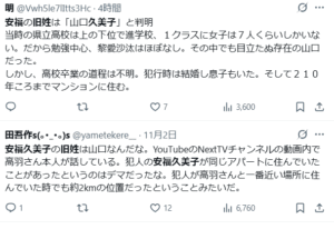 夫と思われる安福姓の男性の名前も特定されていますが、本記事では名前の掲載は控えます。
